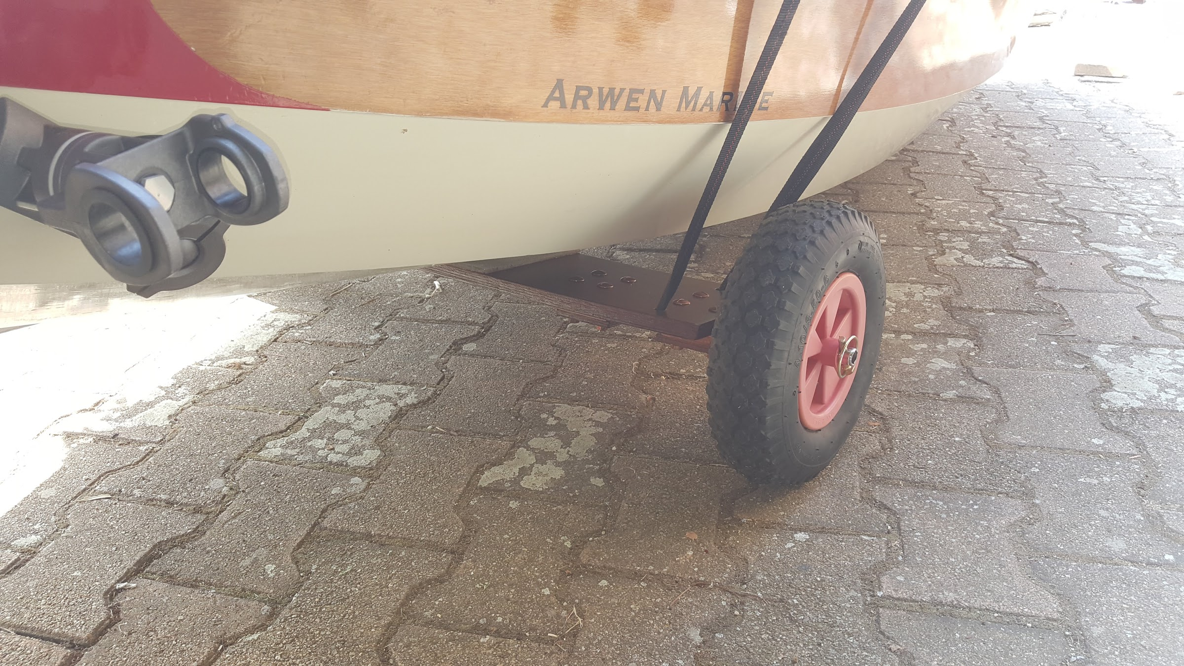 Après avoir écrabouillé successivement deux chariots de mise à l’eau de planche à voile, trop légers pour un bateau comme le Skerry, j’avais acheté sur Internet un chariot « classique » .