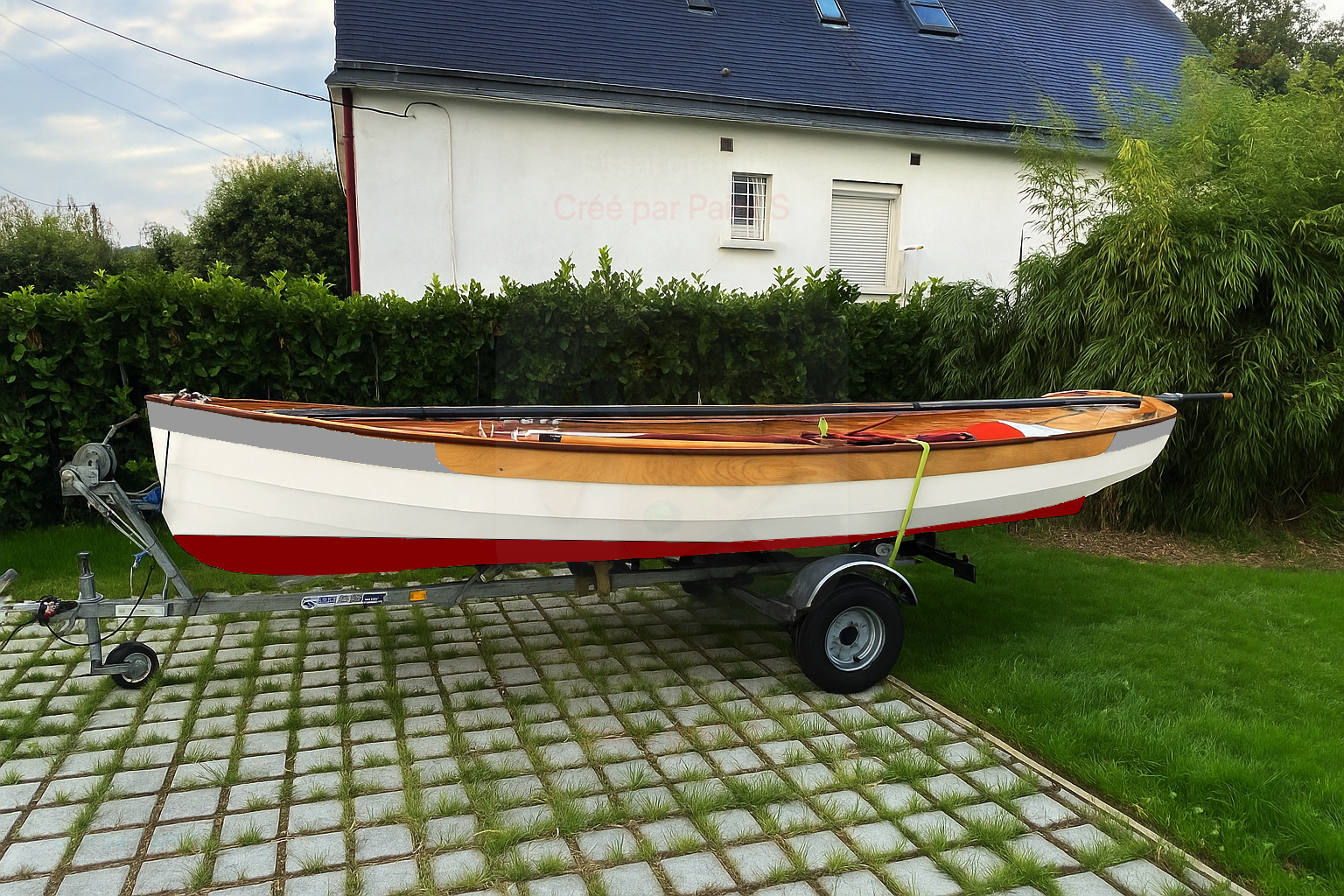 Je me rends compte que dans l’énumération de mes différents bateaux que j’en ai oublié un ! Un très joli dériveur que je n’ai pas gardé longtemps. Dommage c’était peut-être l’occasion de passer déjà au voile-aviron en bois …