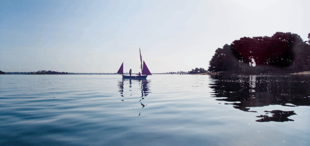 Enfin le vent daigne se lever et le retour vers Arradon peut s’effectuer à la voile. Jusque ce qu’il faut pour terminer le tour de l’île d’Ars et tirer quelques bords carrés pour se glisser entre les deux Logoden, les îles situées juste avant Arradon avant de regagner le port.